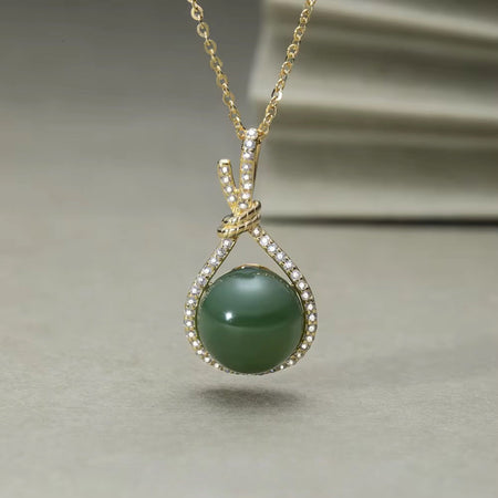 925 Sterling Silver Natural African Jade Stone Pendant Necklace
