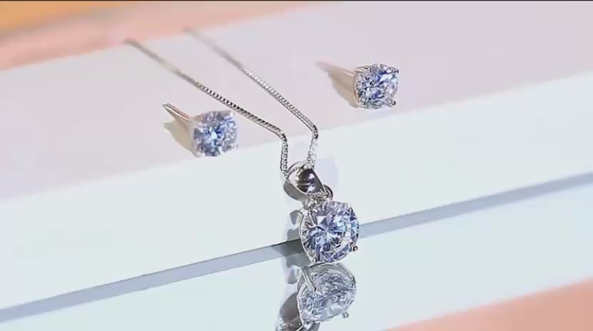 Cubic Zirconia Pave S925 Sterling Silver Pendant Necklace Earrings Jewelry Set for Women