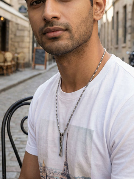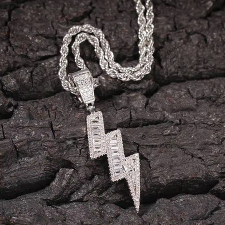 Men's Luxury Hypoallergic Lightning Zircon Pendant Hip Hop Style Stainless Steel Necklace